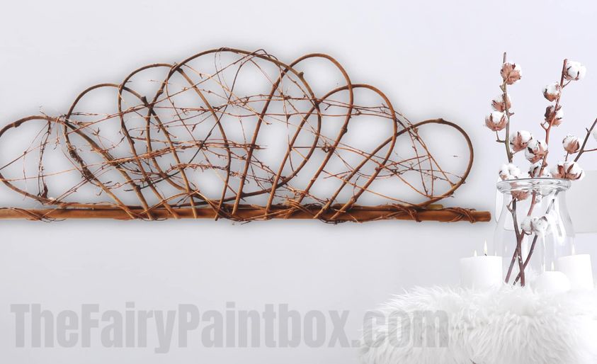 - Hanging Wall Crown of shaped grapevine branches and twigs, assembled by hand