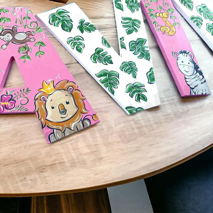 Jungle Safari Palm Leaf Nursery Wall Painted Wood Letters feature: