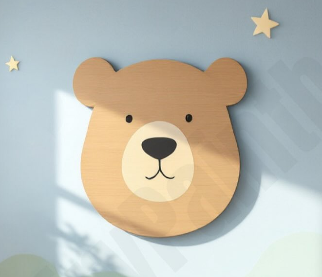 • Hand-Painted Craftsmanship: Bear shaped wood sign features a natural stain finish enhances the wood and organic feel of your nursery. Painted eyes and mouth.