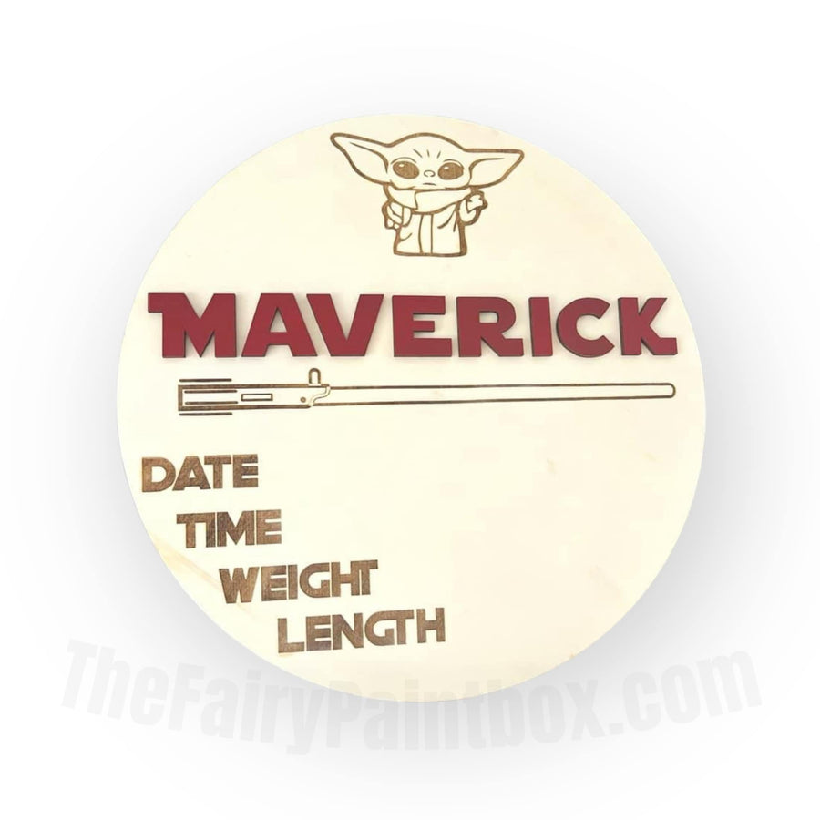 Announce your newborn's arrival into the galaxy with our Jedi Child Grogu Birth Stat Announcement Sign! This stellar newborn baby name newborn stat sign features: