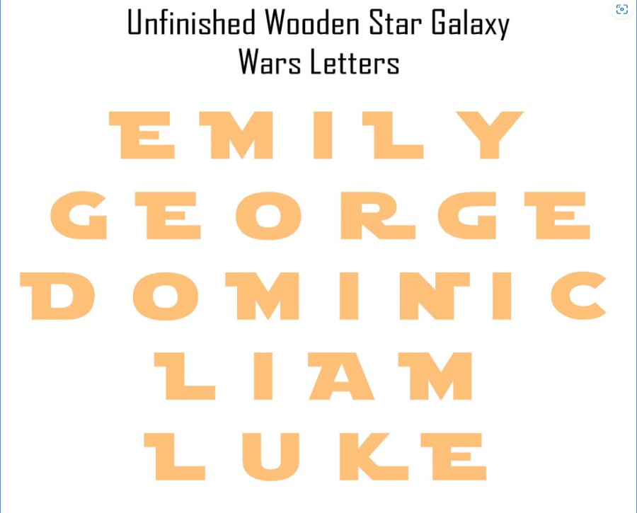 Introducing our Unpainted Jedi Space Wars Wood Letters, the ideal decorative accessory for your little Jedi's bedroom or Sci-Fi nursery room. Crafted from high-quality Baltic Birch wood, these letters feature a captivating galaxy font that will transport your child's imagination to a world of space adventures. Made from unfinished wood, these Wooden Letters offer endless possibilities for customization. Let your creativity soar as you paint, stain, or embellish them to match your desired theme or color scheme. Whether you're a DIY enthusiast or a parent looking to add a personal touch to your child's space, these Unpainted Jedi Wood Letters are the perfect canvas for your artistic expression.