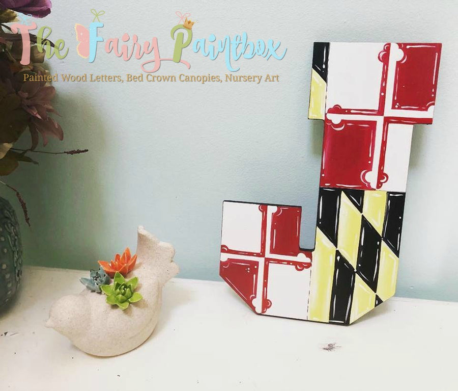 Maryland Flag Painted Letters are perfect for a Maryland Nursery, Baltimore Nursery, Maryland Kids Room, Maryland Dorm Room, Maryland Birthday, Maryland Flag Birthday, Maryland Flag Birthday Centerpiece, Maryland Bedroom Accent, Maryland Man Cave or Maryland Office Décor or Maryland Flag Front Door Monogram.