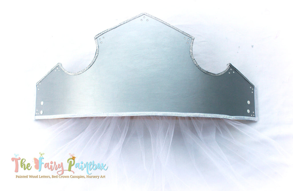 Silver Crown Canopy, Sleeping Beauty Princess Bed Crown Canopy, Baby Crown, Princess Nursery Wall Crown with Curtains, Crown Photo Prop