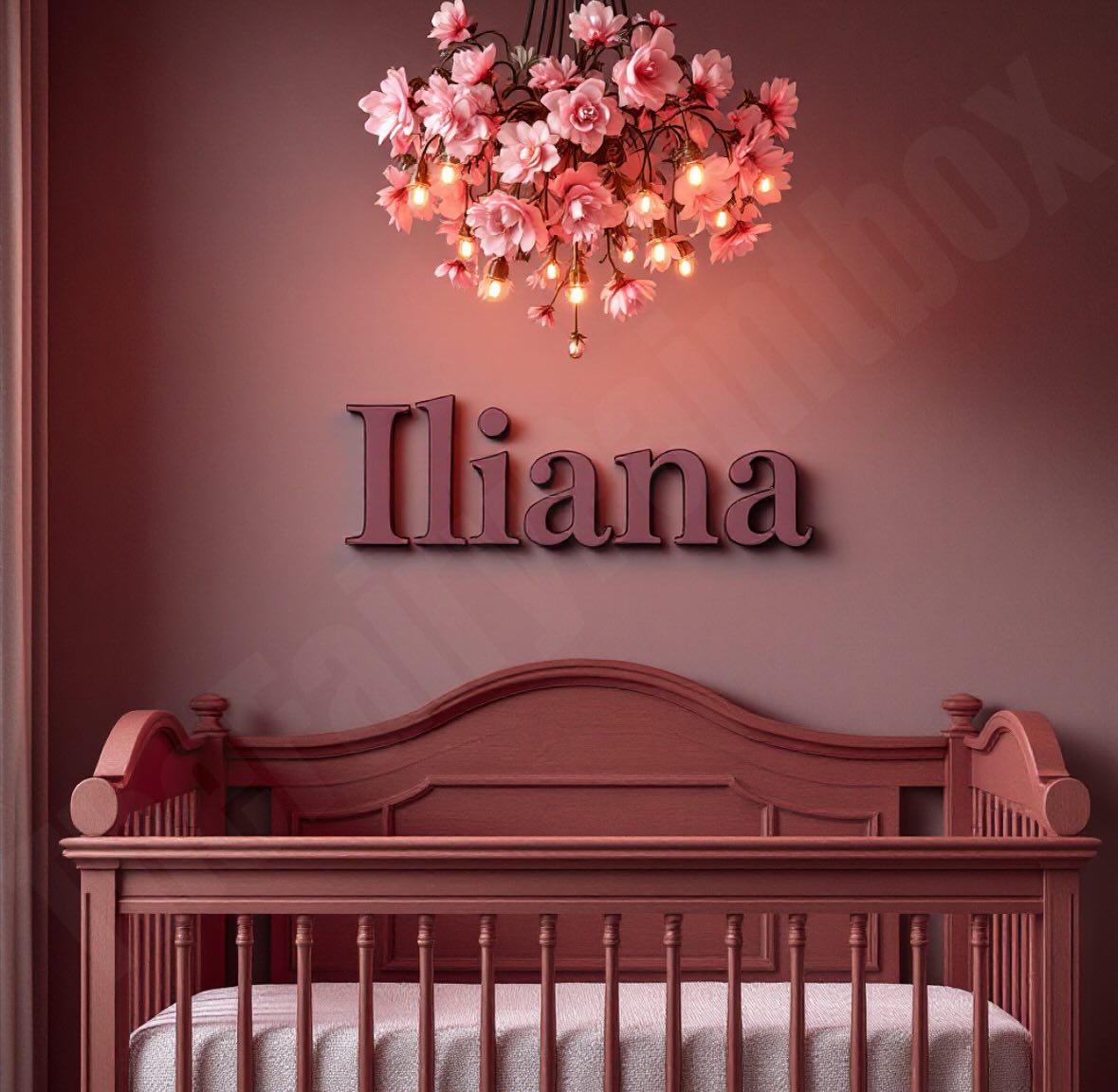 Painted Wall Letters are a must have for your child's room. We provide free preliminary sketches and work with you via email to finalize a design that you love. We will customize any name, phrase or text to coordinate with bedding sets, room themes, color schemes, etc. Choose from our huge selection of fonts and sizes to create your perfect personalized wall letters for any space. Just message us for a custom order!