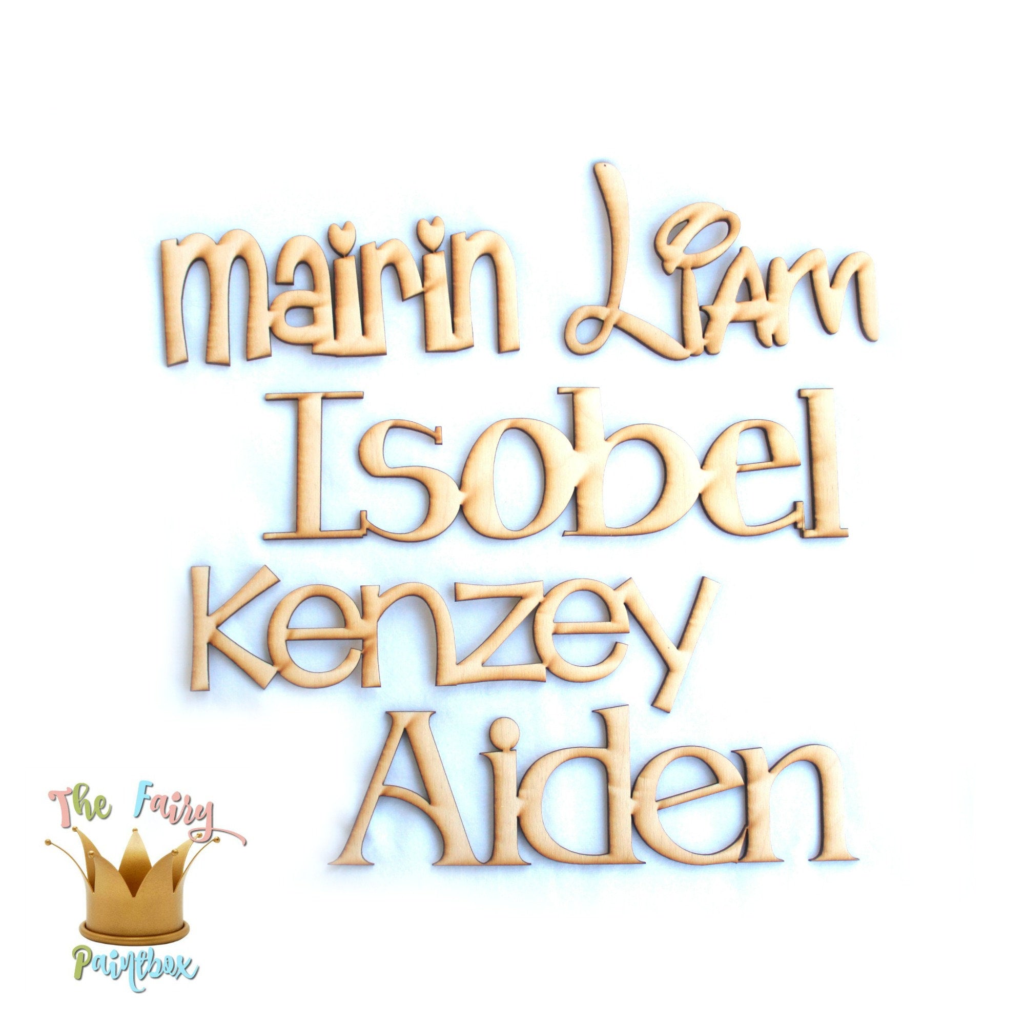 - smaller wood name sizes are perfect for name gift tags, Christmas stocking name tags, Christmas gift name tags, Easter basket name tags and scrap booking projects while larger sizes are great for birthday centerpieces, hanging baby names, names to hang on walls, bedroom doors, dorm rooms and more!