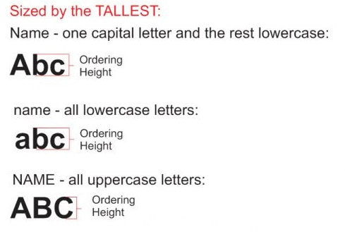 Choose your letter height in the drop-down menu. This listing accommodates names up to 8 characters each. If you need a longer name, please message us for a custom order.